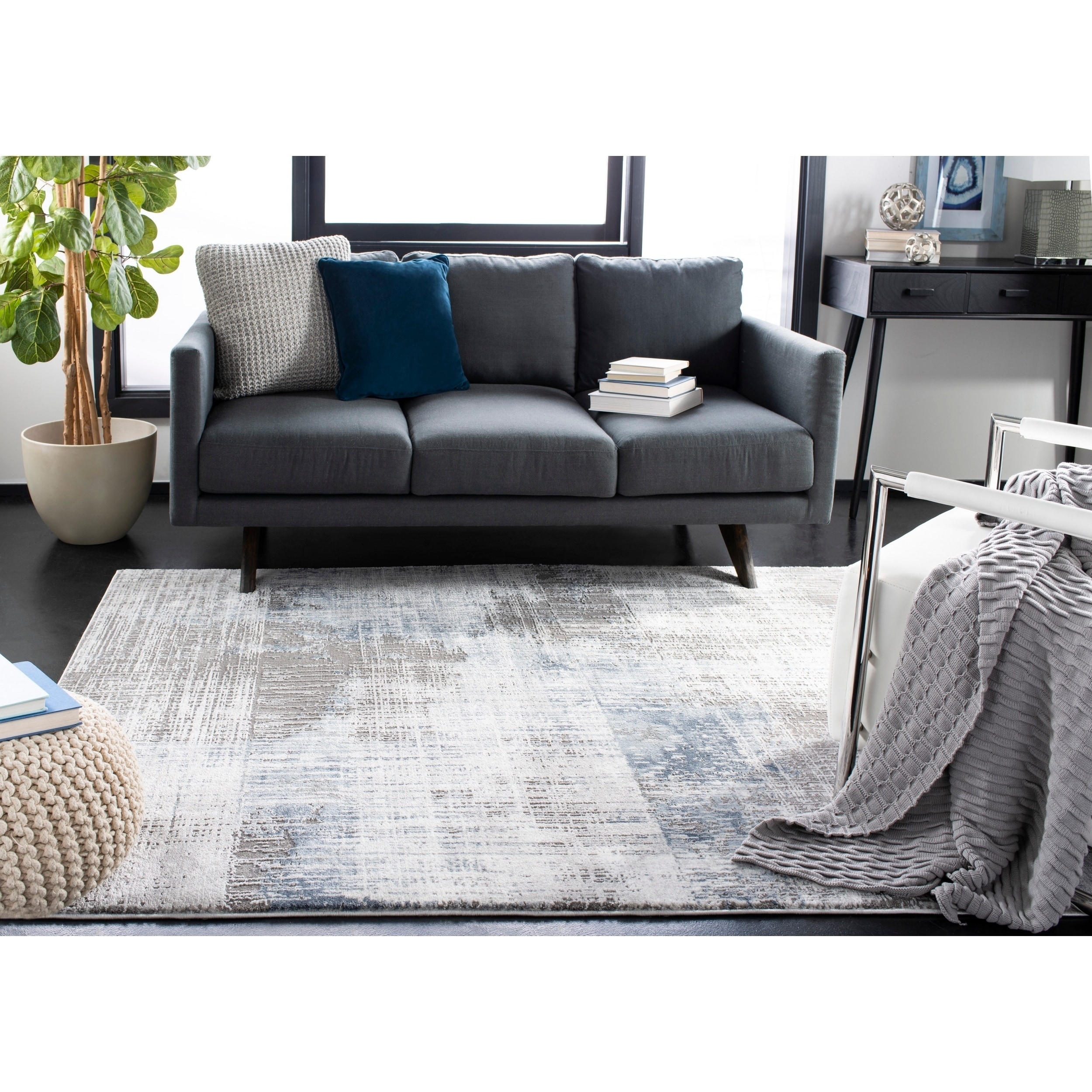 Contemporary Modern Grey And Blue Living Room